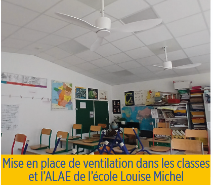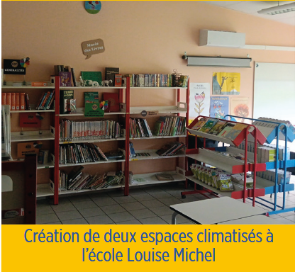- Amélioration du confort thermique dans les bâtiments scolaires : installation de ventilateurs dans les salles de classe de Louise Michel, ainsi qu’une climatisation ciblée et autres équipements adaptés.